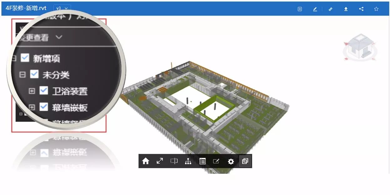 变更是项目施工过程中不可避免的,越是复杂工艺的项目,变更越是频繁,要方便定位出每个版本图纸或者模型变更的位置难度也越大。协筑“模型”模块一直支持多版本管理,因此模型比对也是众多客户一直期望新增加的功能。为了让这个功能可用性、易用性更强,银河集团(galaxy)的图形团队也是花了数月的研发才实现。通过模型比对功能,可以对两个版本的模型进行比较,并通过颜X分显示新增加,修改,删除的模型构件,变更内容一目了然,可极大提高模型检查的效率和准确性。